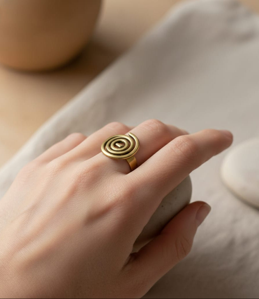 Make a distinctive statement with our handcrafted Spiral Copper Ring, featuring an eye-catching ancient spiral motif that symbolizes eternity and the journey of life.